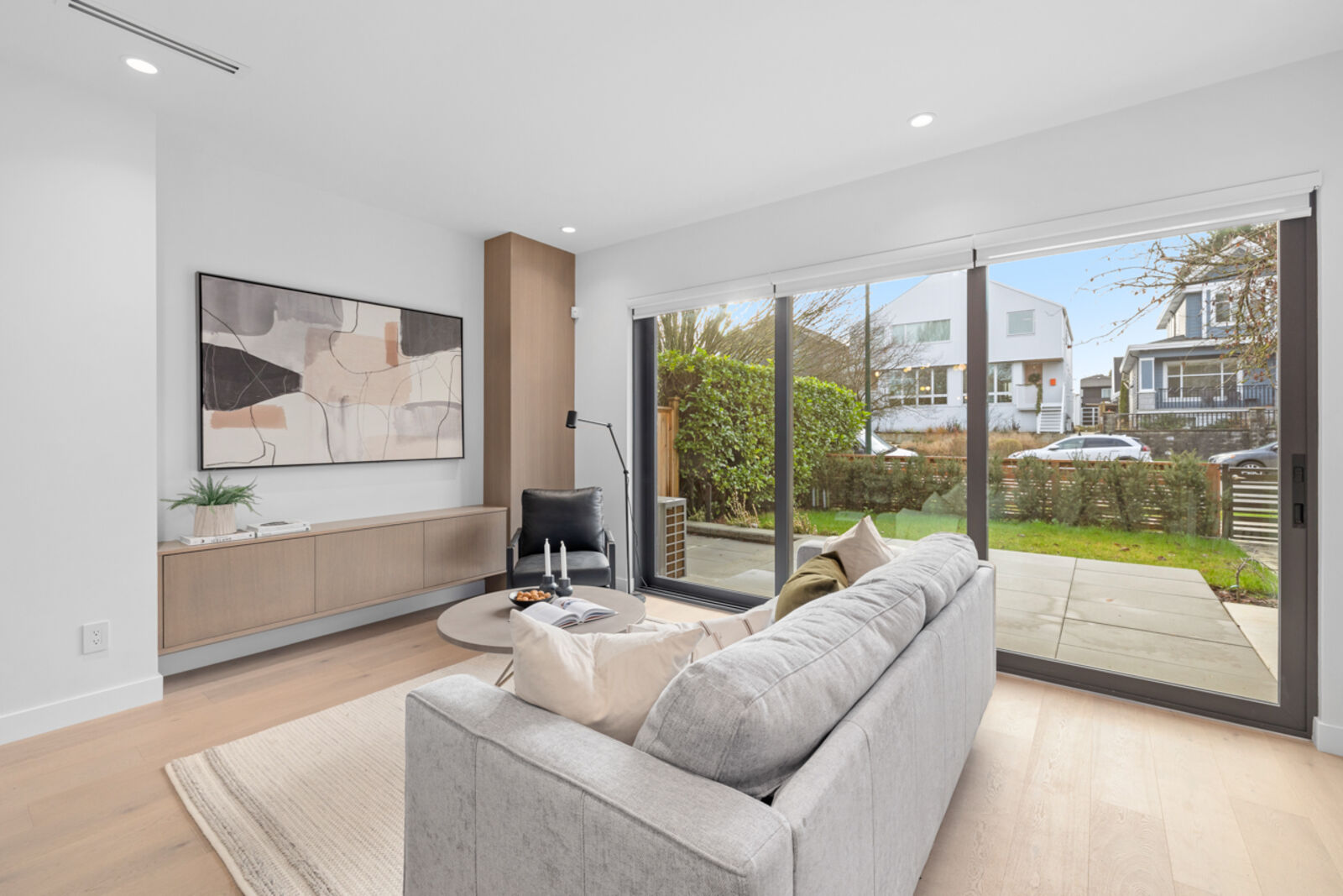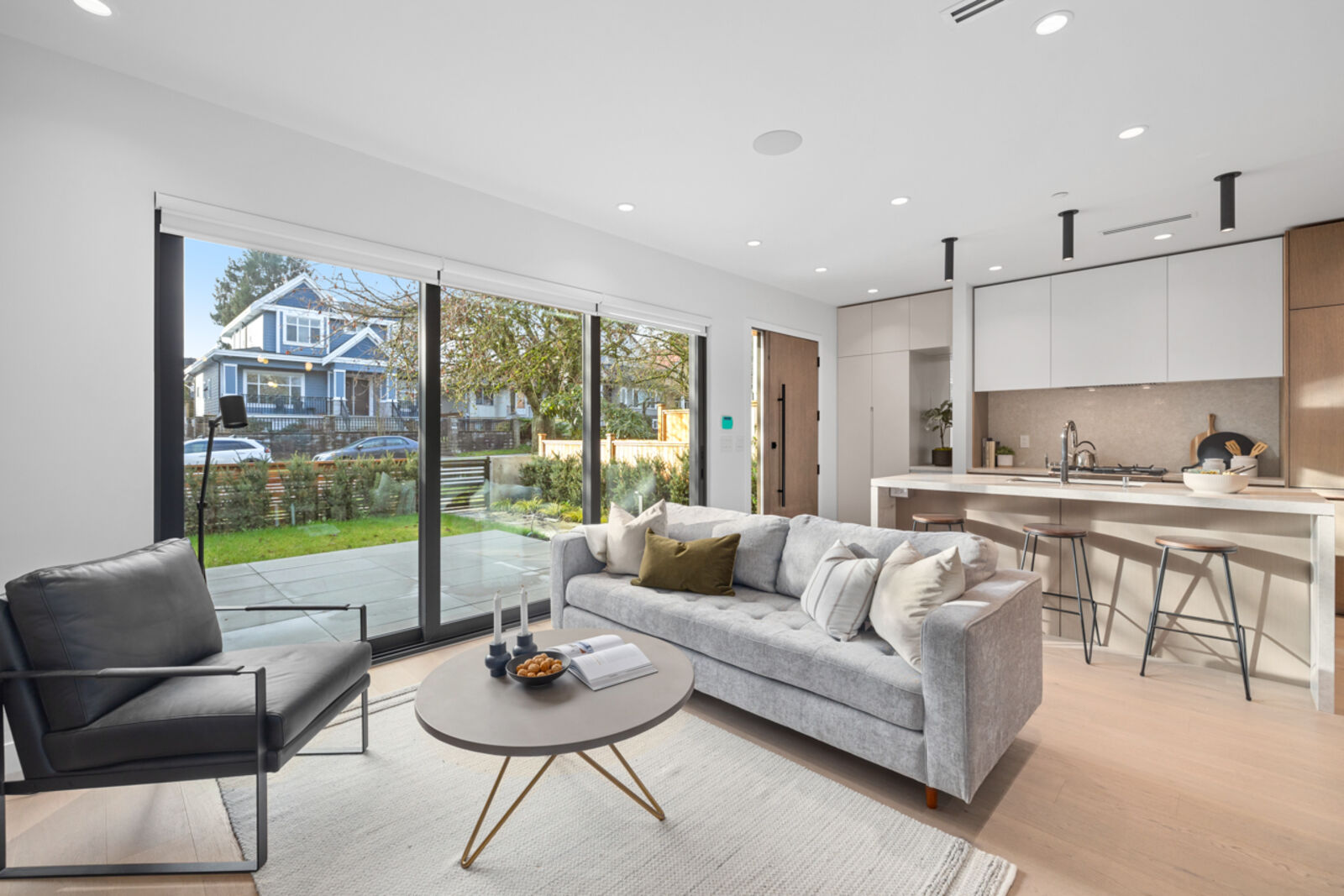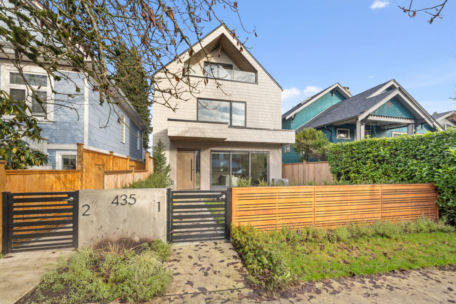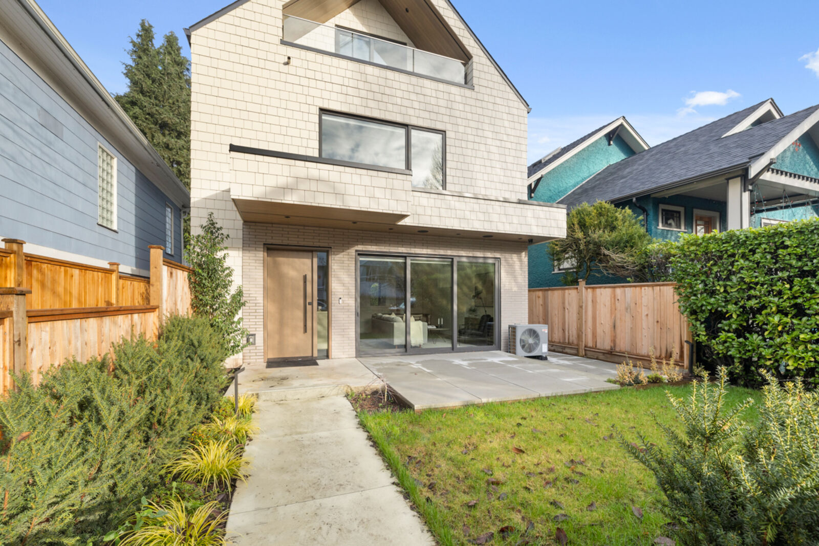Perennial Developments and Architrix Design Studio have teamed up to create this stylish South facing 1/2 duplex in the vibrant Fraser/Main Street neighbourhood. This 3-bed/3.5 bath home features a large open main floor, brushed oak heated floors, hidden pantry, built in surround sound and automatic blinds. Kitchens boast Fisher Paykel appliances, large islands, quartz countertops and custom BCG cabinetry with plenty of storage. The main floor large patio doors open to the quiet private fenced yard with landscape lighting. The primary bedroom includes a walk through closet and ensuite and mountain views. Enjoy the security of a detached garage w/ EV capability and storage. Convenient location near Riley Park, shops, and John Oliver School.