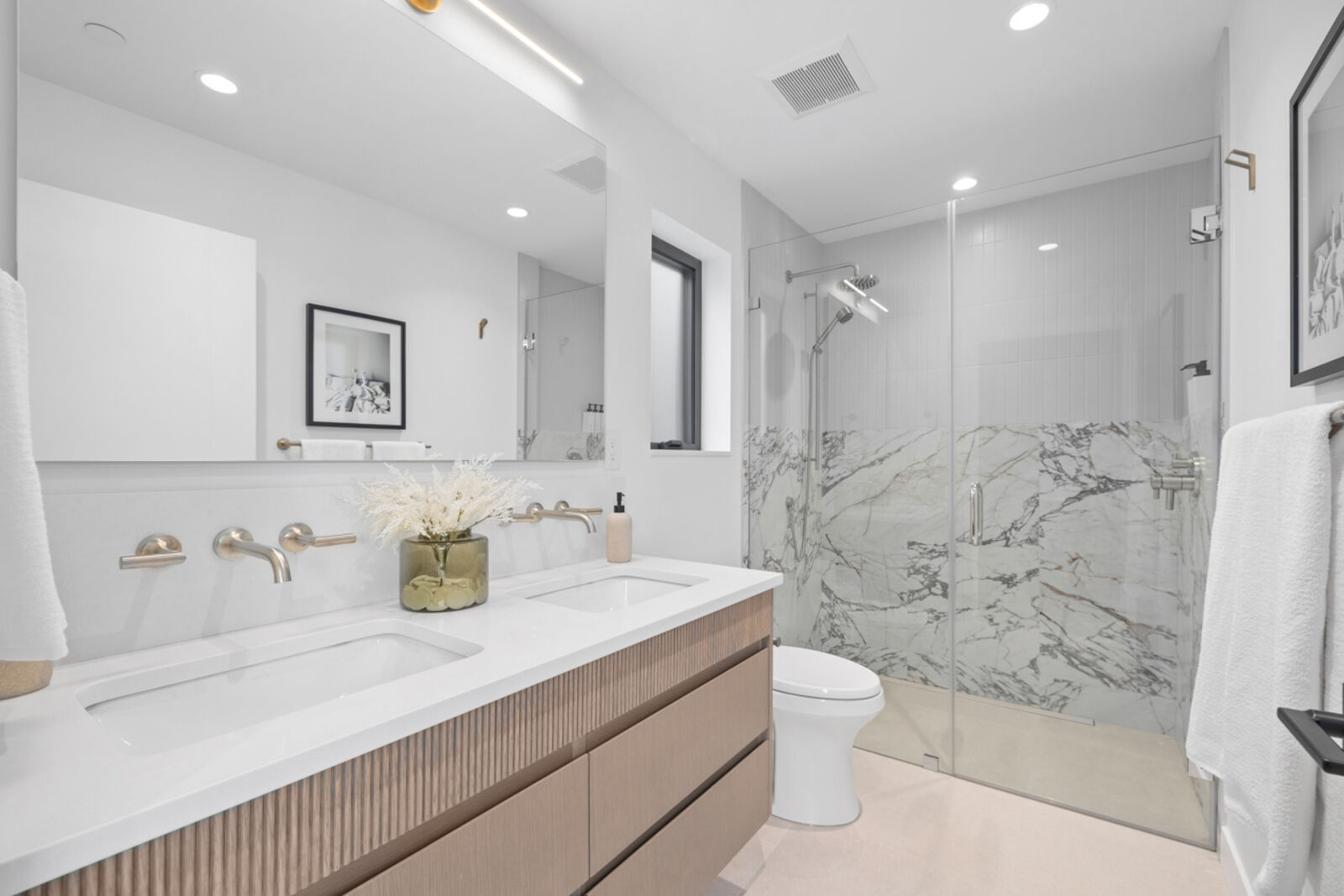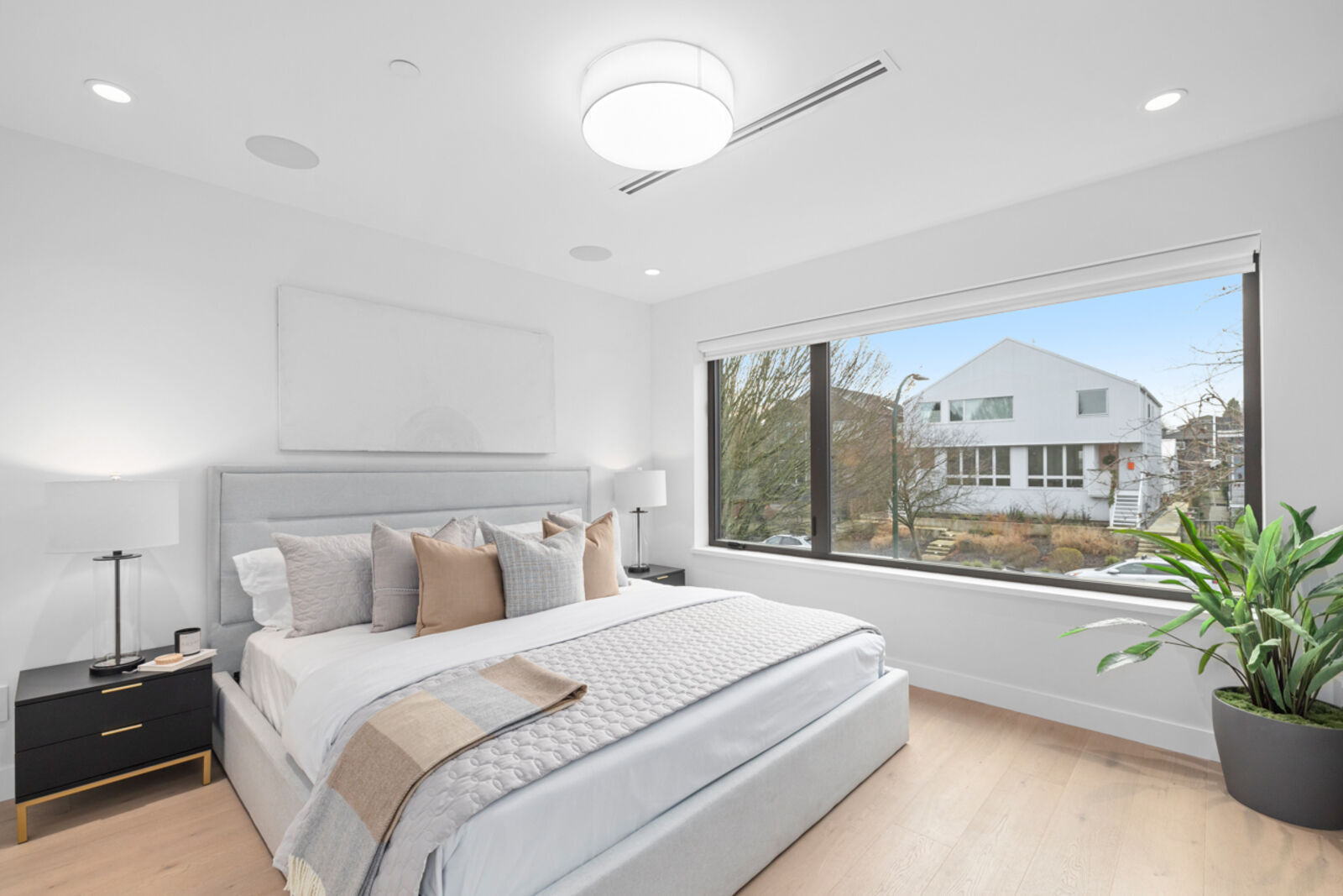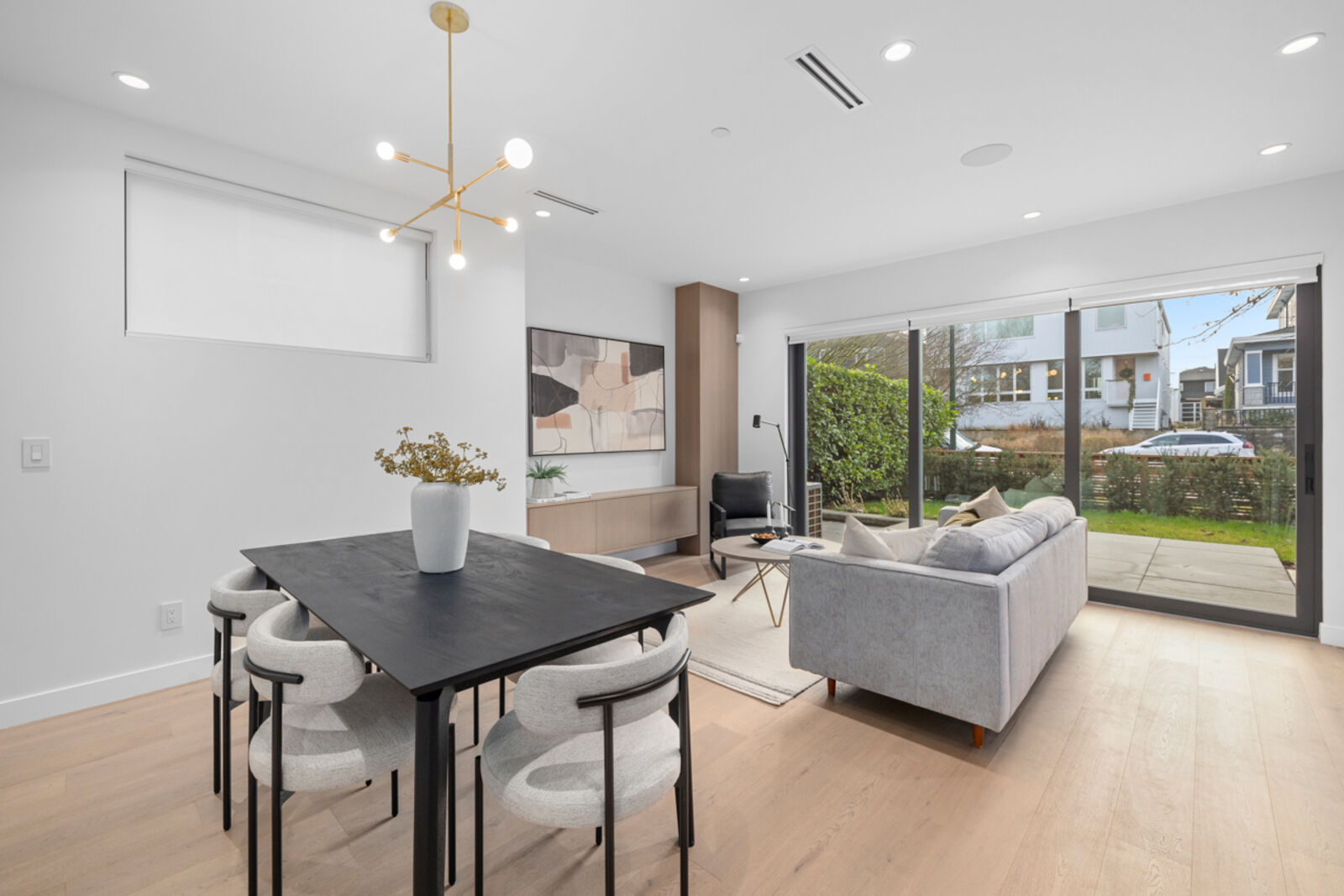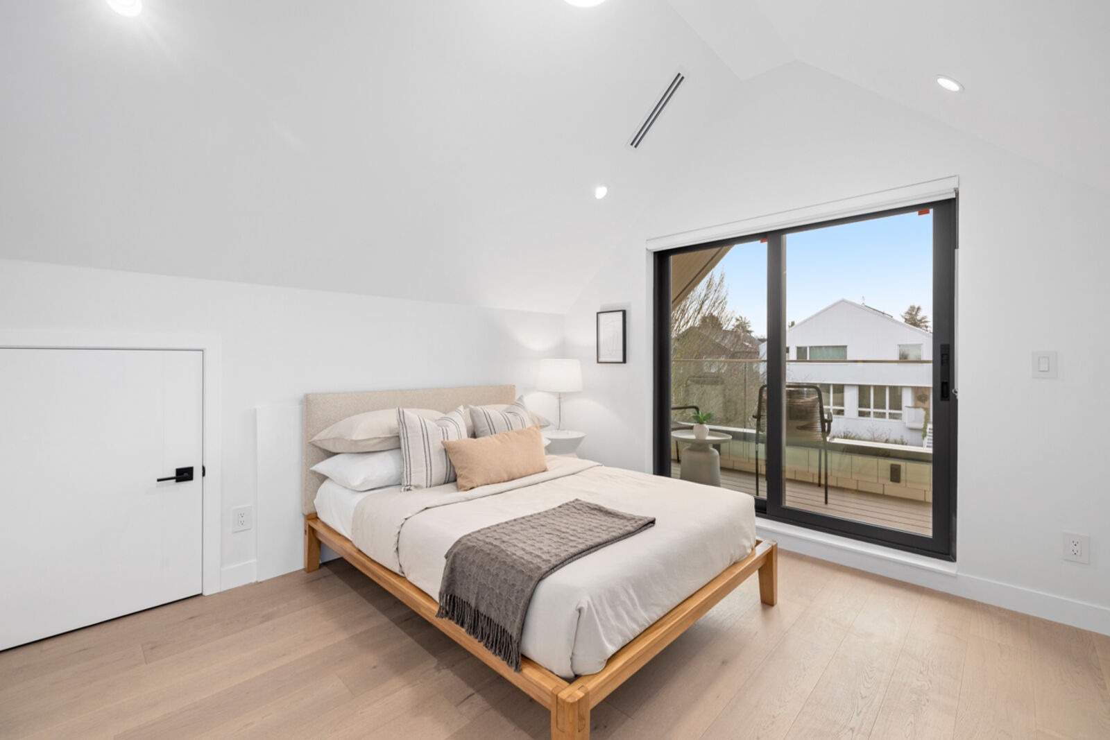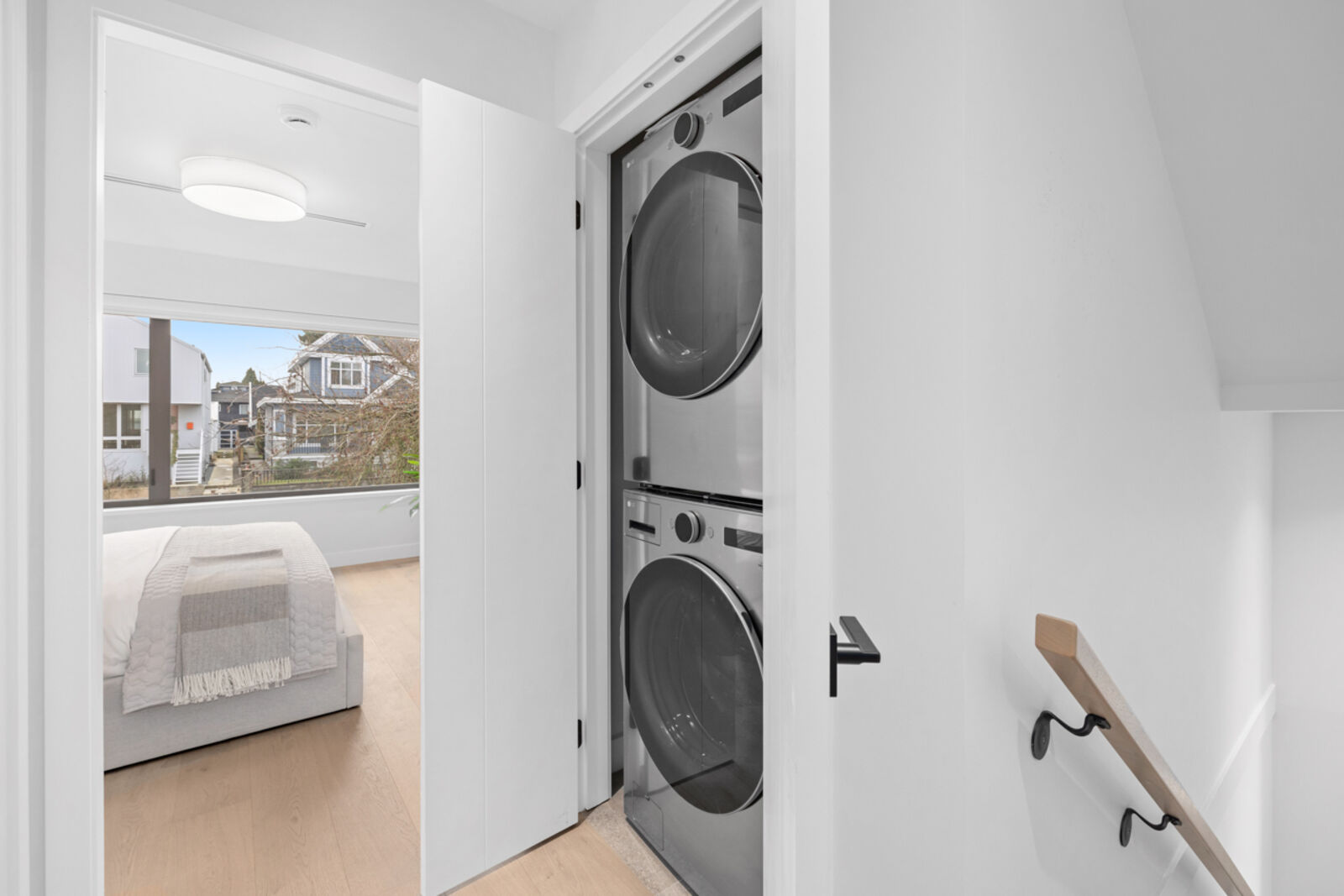 Perennial Developments and Architrix Design Studio have teamed up to create this stylish South facing 1/2 duplex in the vibrant Fraser/Main Street neighbourhood. This 3-bed/3.5 bath home features a large open main floor, brushed oak heated floors, hidden pantry, built in surround sound and automatic blinds. Kitchens boast Fisher Paykel appliances, large islands, quartz countertops and custom BCG cabinetry with plenty of storage. The main floor large patio doors open to the quiet private fenced yard with landscape lighting. The primary bedroom includes a walk through closet and ensuite and mountain views. Enjoy the security of a detached garage w/ EV capability and storage. Convenient location near Riley Park, shops, and John Oliver School.