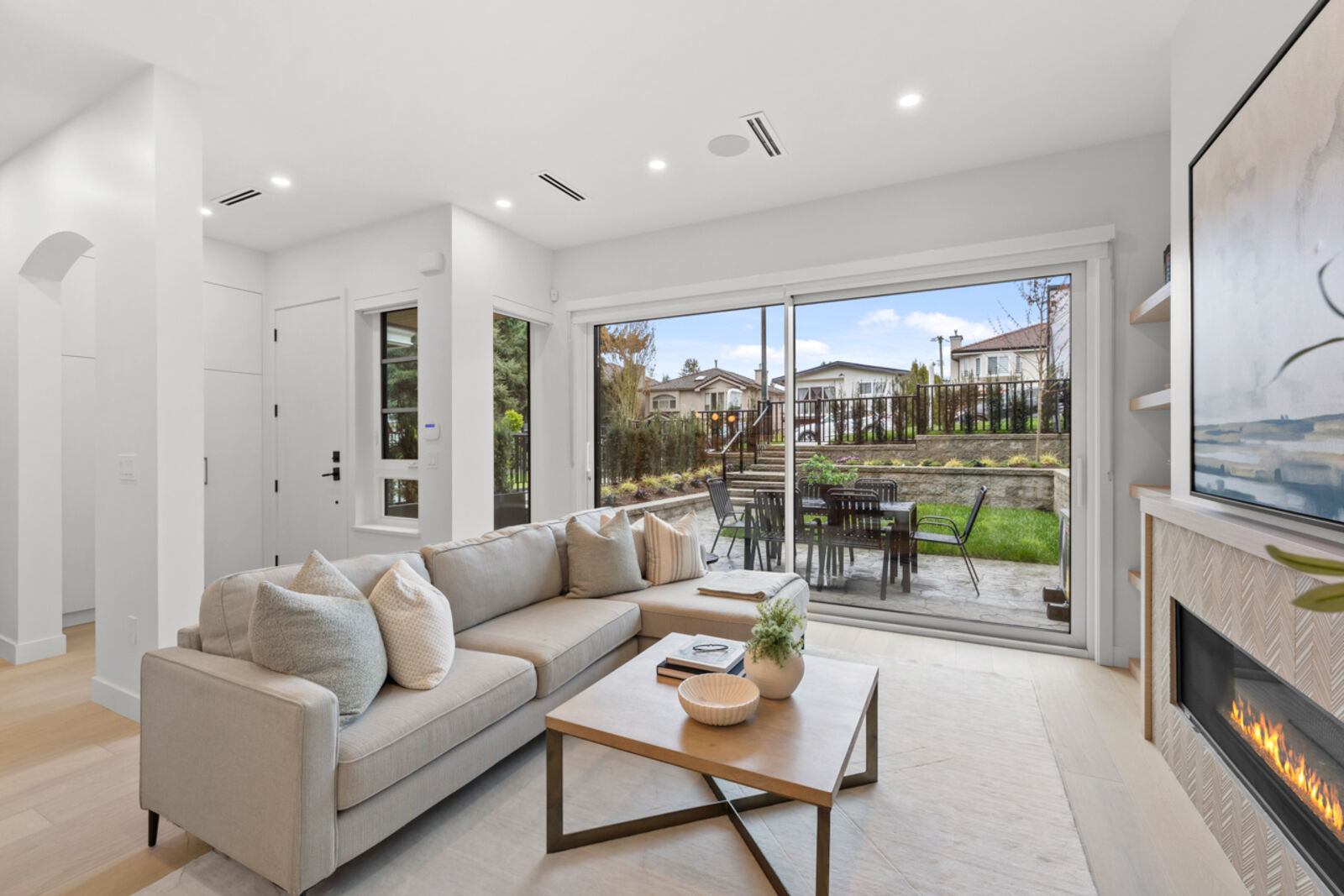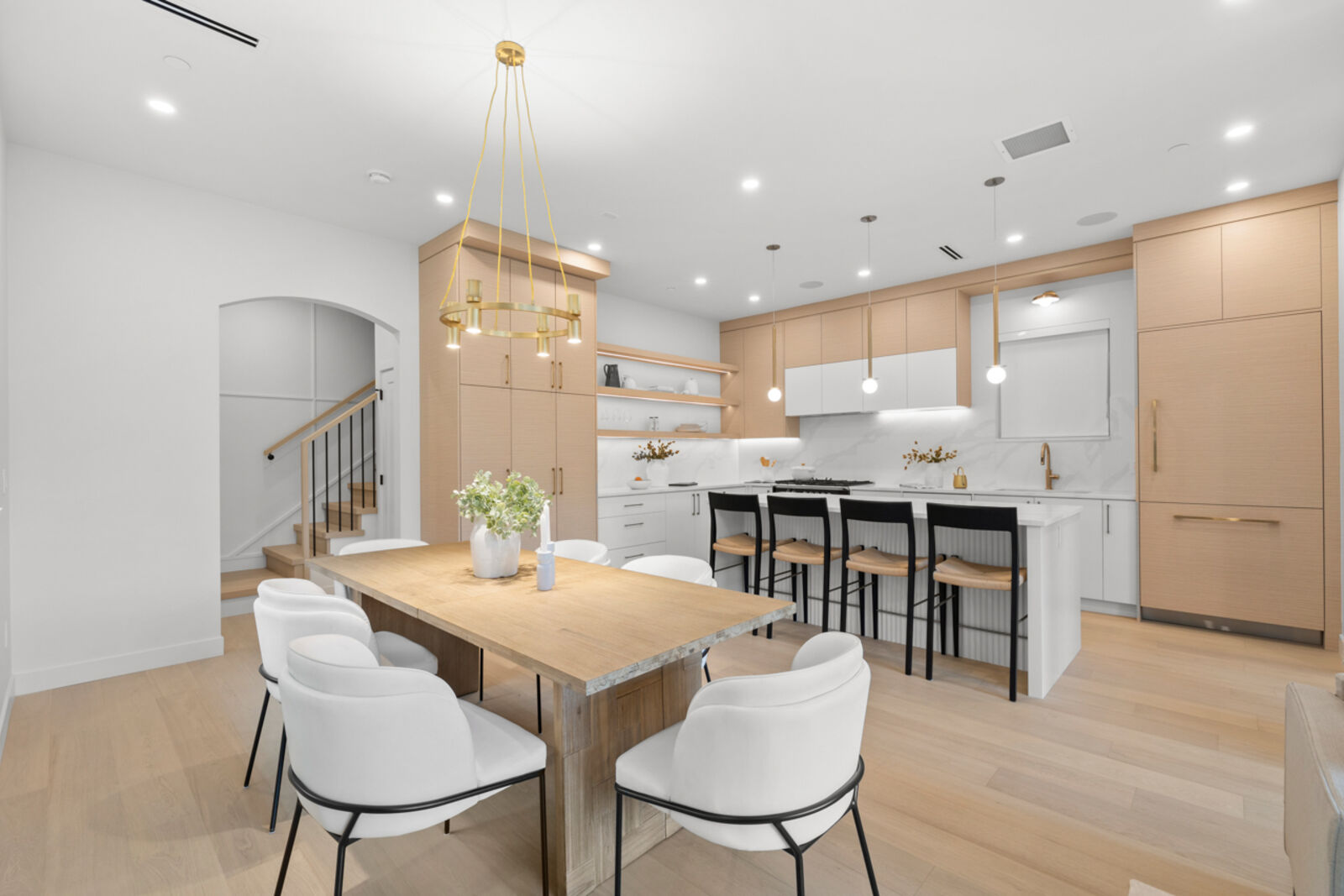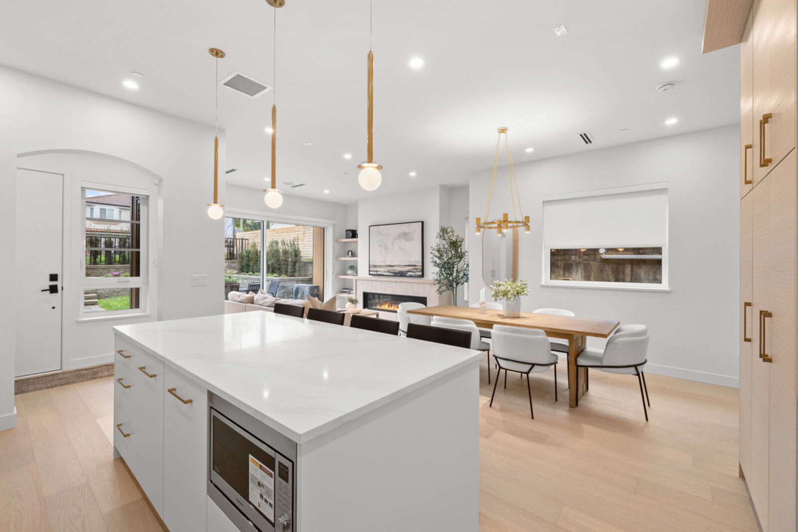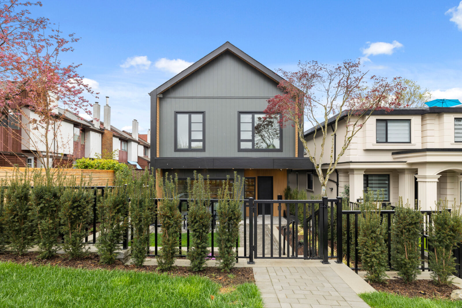 Asanti Homes presents this rare South facing two-level 1,759 sq ft half-duplex with 4 bedrooms + a 490 sq ft fully finished accessible attic. Enter through the grand foyer into a spacious living & dining room featuring an oversized gas fireplace and direct access to a large private patio. The gourmet kitchen offers a large island perfect for entertaining and premium Fisher & Paykel appliances. Upstairs, four generous bedrooms accommodate large families or work-from-home needs. The primary bedroom includes a walk-in closet and private ensuite. Bonus: versatile 490 sq ft finished attic ideal for storage, playroom, office, or whatever your imagination desires. Expansive 33 x 146 ft lot with big back yards, detached garage with EV charging capability.