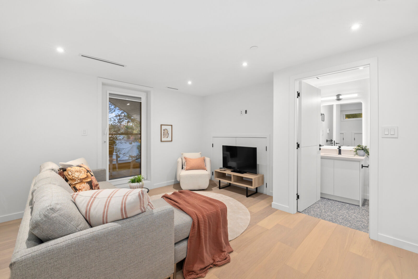 Discover refined living in this stunning 1/2 duplex by Mahnger Homes in the heart of Douglas Park! Elegant design meets luxury with warm tones, oversized windows, and brushed White Oak floors throughout. The gourmet kitchen boasts sleek flat-panel cabinetry, quartz counters/backsplash, and premium matte white appliances. Upstairs, find three spacious bedrooms on one level, each with custom cabinetry. The versatile third level offers a bedroom, guest room, or expansive family room opening to a covered deck—perfect for entertaining. Stay comfortable year-round with a heat pump for heating and cooling. Covered parking and 3 storage lockers add convenience. Steps from parks, cafes, top schools, and transit—this is urban livingat its finest.